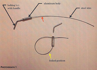 These lockout devices were of mixed construction with an aluminum body, a steel cable and an aluminum screw key (see photograph 1).
