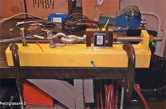 A manually operated fixture was designed and built to perform the pull apart tests (Photograph 3 -blue arrow).